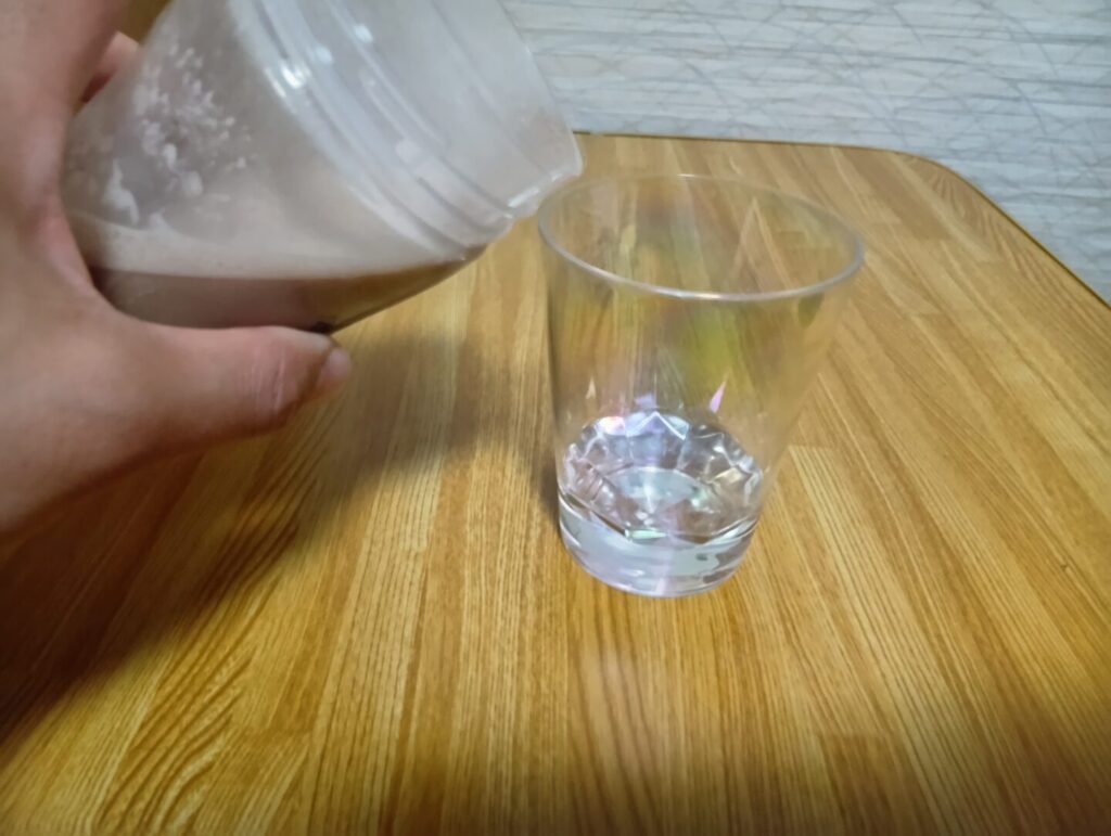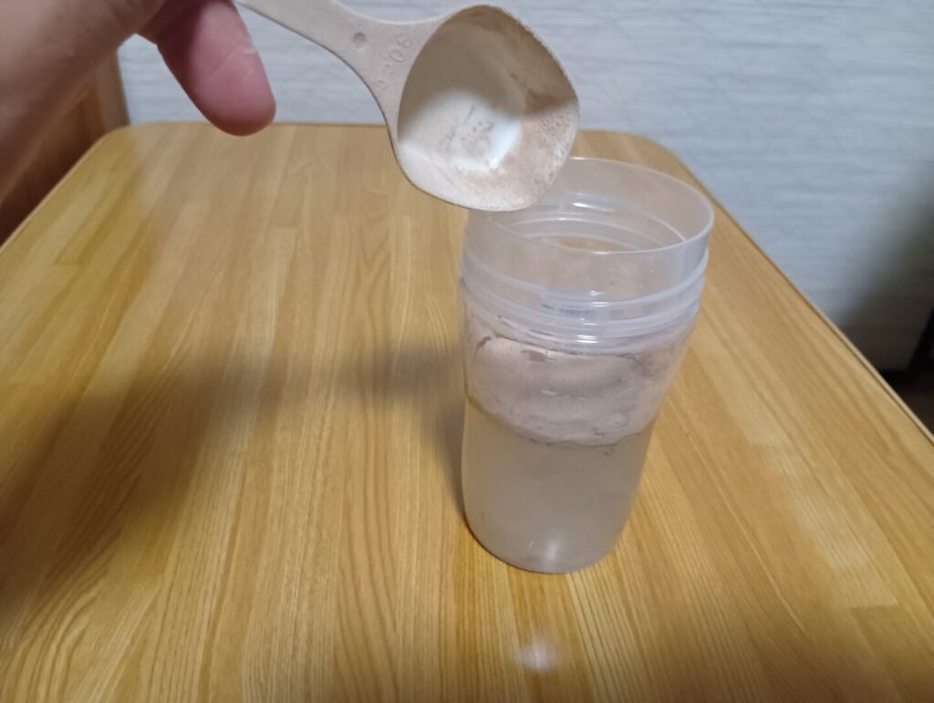 THE PROTEINの粉末は溶けやすく、10回ほどシェイクすれば十分です。