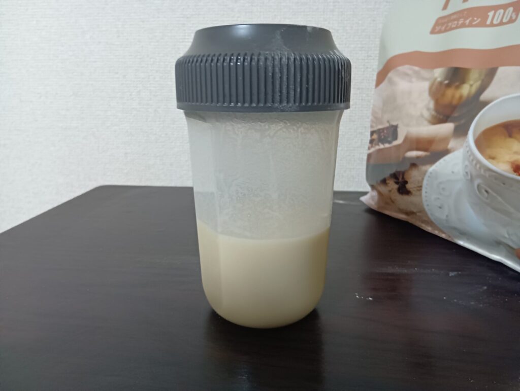 水150㏄に対して、スプーン山盛り1杯分のプロテインを入れます。