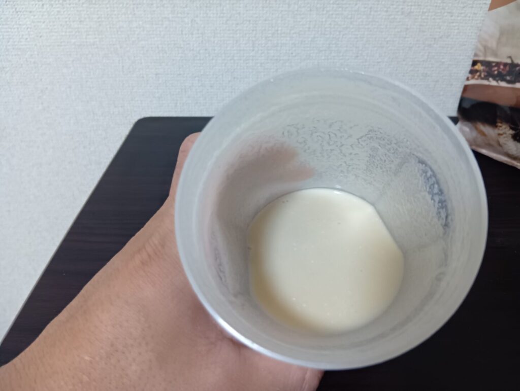 大豆感が残っており、ミルクティー風味の甘さと相まって、きな粉が出ています。